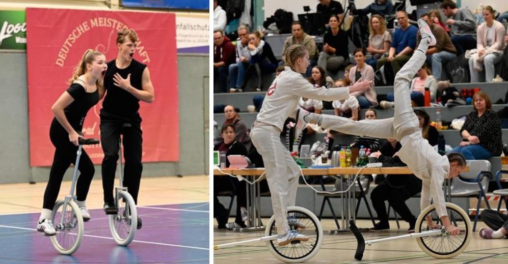 Nadine und Madita und ihr ganzes Einradteam
