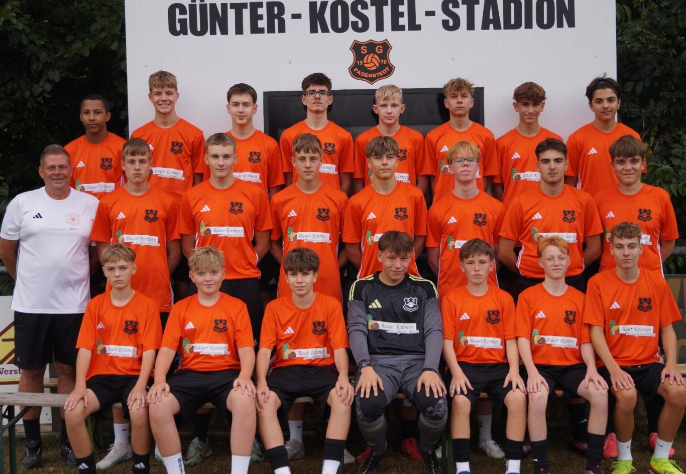 Obere Reihe von links: Nils Brown, Jannik Döring, Hermann Tarasow, Mattes Menzel, Leon Joel Kersten, Louis Menzel, Deniz Yilmaz, Miro Salihi. Mittlere Reihe von links: Trainer Jens Baum, Nick Fahrenkrog, Leander Becker, Sam Fahrenkrog, Kjell Blümle, Lukas Rathjen, Filip Marjanovic, Kian Mejramov. Vordere Reihe von links: Dniels Babijs, Finn Quast, Julian Blessmann, Lian Ziegenhagen, Elias Illg, Nico Karwelies, Tim Schnieber