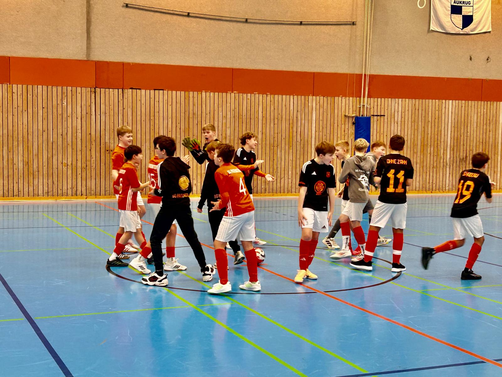 In einem „jeder gegen jeden“ Modus mit 7 Mannschaften wurden wir am Ende zweiter und mussten uns dem Ligakonkurrenten aus der Verbandsliga Nord, Eintracht Groß Grönau geschlagen geben. Bis zu dem Spiel gegen den späteren Sieger fegten die Jungs durch die Halle und ließen den Gastgeber aus Tungendorf (der mit zwei Mannschaften antrat), TUS Elmschenhagen, Sereetzer SV und Vinetia Audorf mit ratlosen Gesichtern zurück. Ein wenig Überheblichkeit unserer Jungs, gepaart mit einer staken Leistung von Groß Grönau führte dann zur einzigen Niederlage und dem zweiten Platz. Trotzdem war es ein starker Auftritt, mit 19 geschossenen Toren in 6 Spielen. Bei lediglich 4 Gegentreffern gab es nicht viel Platz für Kritik. Am Ende lag eine gute Trainingseinheit hinter uns 😊.
